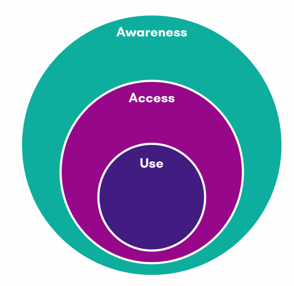 • Awareness is the outer circle: whether people know that a digital service exists